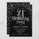 Invitation de fête du 21e anniversaire. Design élégant en noir et faux parties scintillant argent. Comprend des polices de caractères et des confettis stylisés. Message-moi si vous avez besoin d'âge personnalisé.