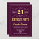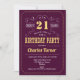 Invitation de fête du 21e anniversaire. Elégant vin de marsala bordeaux et design rétro or jaune avec police de script. Salut à 21 ans ! Message-moi si vous avez besoin d'une personnalisation plus poussée.