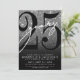 Célébrez vingt-cinq ans d'amour avec cette invitation moderne pour un 25e anniversaire de mariage. Le design présente un fond pailleté argenté scintillant superposé à un dégradé noir subtil pour un look glamour et intemporel, symbolisant l'argent, le métal officiel de cette année charnière. Un grand "25" noir s'étend sur la majeure partie de la carte, avec un "Vingt-Cinq" blanc écrit à la main en surimpression pour un contraste saisissant. Les détails de la fête sont soigneusement disposés en bas dans une police sans empattement claire, ce qui maintient la mise en page minimaliste et sophistiquée.
