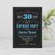 Invitation de fête du 30e anniversaire. Design élégant noir, bleu, blanc rétro avec motif de tableau noir et police de script. Bravo à 30 ans ! Message-moi si vous avez besoin d'une personnalisation plus poussée.