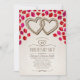 Cartes d'invitation uniques pour une fête de 30 ans de mariage avec des cœurs de sable et des pétales de rose. Personnalisées avec les détails de votre célébration. Elles présentent 2 beaux cœurs de sable avec des pétales de rose rouge et une typographie tendance. Au verso, il y a un petit cœur en forme de pétale de rose avec les initiales du couple célébrant. Romantiques invitations de mariage sur le thème de la plage, pour un anniversaire de mariage nautique, pour des fêtes de destination, côtières ou tropicales à Hawaii. Cette invitation d'anniversaire de mariage est conçue par http://www.superdazzle.com