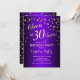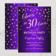 30e anniversaire invitation pour femmes ou hommes. Elégante carte d'invitation violet et or avec police de script et confetti. Bravo à 30 ans ! Parfait pour une fête d'anniversaire d'adulte.