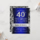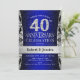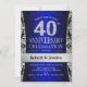 Invitation à une fête d'anniversaire de mariage de 40 ans en bleu saphir, noir et argent.
