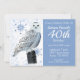 Chouette blanche neige sur un poteau avec de magnifiques flocons bleus. Customisez avec les informations de votre fille d'anniversaire et les détails de votre fête.