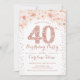 40e anniversaire de fête d'invitation pour les femmes. Elégante carte invitation florale en or rose blanc, rose vif et faux parties scintillant. Caractéristiques police de script de typographie et lettres de losange. Parfait pour une fête anniversaire adulte.
