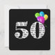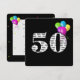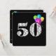 Texte en noir et blanc gras sur arrière - plan noir avec ballons colorés pour invitation de fête du 50e anniversaire.