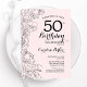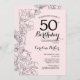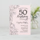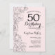 Invitation à la fête du 50e anniversaire de Blush Pink. Design moderne minimaliste avec accents de dessin botanique et police de script de typographie. Carte invitation simple et tendance, parfaite pour une célébration anniversaire élégante. Peut être customisé à n'importe quel âge. Invitations Zazzle imprimées ou téléchargement instantané modèle imprimable numérique.