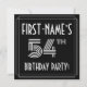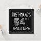 L'avant de cette élégante carte d'invitation cinquante-quatrième anniversaire comporte un nom personnalisable, un style art déco fantaisie inspiré du numéro "54e", le message "FÊTE D'ANNIVERSAIRE !", et un motif frontalier composé de lignes. L'avant a également un arrière - plan de couleur noire par défaut, mais il peut être customisé à une couleur différente si désiré. Le verso présente des détails personnalisés sur l'événement, tels que la date, l'heure, l'emplacement et toute autre information importante. Des invitations élégantes, luxueuses et customisées comme celles-ci pourraient être utilisées pour les participants/invités invitations à une fête d’anniversaire ou à une réunion organisée pour célébrer le 54e anniversaire de quelqu’un. [~Z0000615]