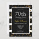 Fête du 70e anniversaire | Noir et Blanc avec motif pailleté or. Il s'agit d'un modèle prêt à être personnalisé avec les détails de votre fête.