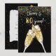 Toast de champagne sur noir avec confettis colorés en chute pour l'invitation de la fête du 80e anniversaire.