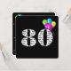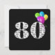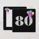 Texte en noir et blanc gras sur arrière - plan noir avec ballons colorés pour invitation de fête de 80e anniversaire.