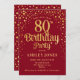 Invitation à la fête du 80e anniversaire. Design élégant en or rouge et faux parties scintillant. Comprend des polices de caractères et des confettis stylisés. Message-moi si vous avez besoin d'âge personnalisé.