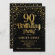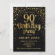 Invitation de fête du 90e anniversaire. Design élégant en or noir et faux parties scintillant. Comprend des polices de caractères et des confettis stylisés. Message-moi si vous avez besoin d'âge personnalisé.