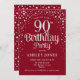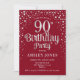 Invitation de fête du 90e anniversaire. Design élégant en rouge foncé et faux argent parties scintillant. Comprend des polices de caractères et des confettis stylisés. Message-moi si vous avez besoin d'âge personnalisé.