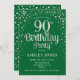 Invitation de fête du 90e anniversaire. Design élégant dans la forêt émeraude vert et faux argent parties scintillant. Comprend des polices de caractères et des confettis stylisés. Message-moi si vous avez besoin d'âge personnalisé.