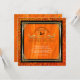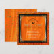 Élégante invitation à la fête du bal d'Halloween en orange classique d'Halloween avec des touches d'or et de noir- Le centre est un cadre décoratif à l'aspect métallique or avec des rouleaux en feuilles représentant un casquette de sorcière entouré de chauves-souris. Vous trouverez ci-dessous le nom de l'honoraire et les détails de la fête personnalisée, y compris les informations sur le RSVP. Contre une orange, soie à l'aspect arrière - plan avec cadre d'aspect de métal d'or faux et frise de parties scintillant orange brillant. Le dos a un effet de satin orange coordonné et des points de confettis de feuilles d'or faux. Invitations uniques et magnifiques à l'anniversaire d'Halloween.