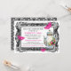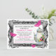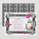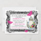 Les invitations à la Fête du Thé du Jardin à l'avant présentent un cadre français assez vintage en papillons noirs et roses et une théière ancienne ornée de roses. Le dos a un motif damassé en noir.