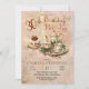 Ensemble à thé élégant, chic et sophistiqué avec feuillage d'hiver orné de rubans et de baies avec un magnifique design de gâteau aux cerises à trois étages "30e Anniversaire Par-Tea" dans des nuances de rose blush, de rouge poussiéreux et de vert sauge foncé avec des accents ton sur ton dorés. Le fond est une combinaison d'aquarelle en plusieurs couches, d'alcool et d'encre pour créer un effet vieilli et intemporel qui complète parfaitement le design. Idéal pour les célébrations d'anniversaire en hiver et pendant les fêtes.