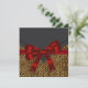 Belle invitation de fête de léopard rouge et noir avec un nœud rouge. Cette invitation de fête de léopard rouge élégante est facilement personnalisable en ajoutant les détails de votre événement, le style de police, la taille et la couleur de la police, ainsi que la formulation.