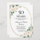 Invitation élégante pour le 50e anniversaire de mariage avec un modèle comportant un cadre doré et deux arrangements de roses blanches. Tout le texte est modifiable.