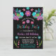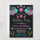 Joli design floral mexicain Fiesta avec des fleurs folksy rose, violet et bleu vif sur un arrière - plan noir