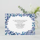 Dessin de cadre botanique bleu sur le devant. Invitation générique pour célébrer une fête pour n'importe quelle occasion, y compris un anniversaire, un mariage, une remise de diplôme, professionnel, entreprise, anniversaire de mariage, affaires, ouverture, shower bébé, enterrement de vie de jeune fille, journée portes ouvertes, pendaison de crémaillère, dîner, etc.
