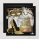L'élégante invitation à la mascarade d'anniversaire rouge et or de la femme avec de belles chaussures à talon haute parties scintillant d'or et un élégant et orné masque mascarade or et verre de champagne sur un joli arrière - plan rouge, noir et or.. Cette invitation à la mascarade rouge, noir et or est facilement customisée pour votre fête ou événement en ajoutant simplement les détails de votre événement, le style de police, la taille et la couleur de police et le libellé. Veuillez noter que tous les modèles d'invitation que vous trouverez sur Zazzle sont des graphiques imprimés sans bijoux, arcs, parties scintillant, etc.