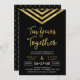 Invitation moderne pour le 10ème anniversaire avec un chevron géométrique élégant et les mots "Dix ans ensemble" en faux or sur fond noir. La carte comprend un motif assorti au verso. Découvrez les articles assortis ici http://www.zazzle.com/collections/modern_faux_gold_chevron_celebration_collection-119531050277382712?rf=238364477188679314