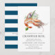 Un ensemble de cartons d'invitation pour une fête de couples sur le thème de l'ébullition de l'écrevisse pour votre prochaine barbecue ou fête en rapport avec les fruits de mer. Ces invitations présentent un texte noir simple, ainsi qu'une illustration unique d'écrevisse centrée vers le haut. Au verso de l'invitation se trouve un motif rayé bleu océan et blanc. Tous les éléments de cette invitation sont ajustables en utilisant la fonction de personnalisation. Amusez-vous à ajouter vos propres détails et à la rendre vôtre.