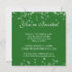 Campagne de Noël Arbre Décoration Invitation de la fête - Centré est un arrière - plan photo rustique de vieilles planches en bois de grange. Sur la droite se trouve une couronne traditionnelle de pin de Noël ornée de cônes de pin, d'arc rouge et de perles. Lit 'Christmas Tree Decorative Party' en lettres blanches et blanches blanches. Bordé en haut et en bas par une photo des lumières de Noël, l'effet de boule sur le noir. Dans les couleurs classiques de Noël, vert, rouge, or et bleu. Prêt à être personnalisé à l'arrière avec vos informations de fête de vacances maison ouverte sur un arrière - plan vert solide assorti bordé au sommet et au fond avec des flocons de neige éparpillés. La couleur verte arrière - plan peut être changée en n'importe quelle couleur. Il y a aussi différents styles et tailles d'invitation à la fête de Noël. Amusante invitation à la Fête de l'Arbre de Noël pour tous les âges.
