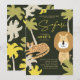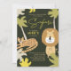 Appel à tous les petits explorateurs en safari africain. L'invitation représente un lion et un guépard assis parmi les palmiers et la végétation qui créent le cadre pour le texte parfait pour une célébration sauvage !