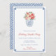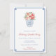 Aquarelle rouge et blanche traditionnelle Fleurs de Noël et feuillage dans un vase de style Ginger Jar. L'avant a une bordure "clé grecque" et l'arrière a un motif "clé grecque". Vous pouvez modifier la couleur de contraste de chaque côté (représentée ici en bleu moyen) en n'importe quelle couleur que vous souhaitez en entrant dans l'outil de conception (sous la zone de personnalisation du texte, cliquez pour "customiser plus loin"), puis en modifiant la couleur arrière - plan de chaque côté de l'invitation.