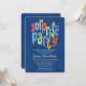 Une invitation de fête surprise colorée et amusante. Cette invitation fabuleuse présente une typographie moderne audacieuse sur fond bleu. Facile à personnaliser avec vos propres détails de célébration de fête d'anniversaire surprise.