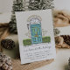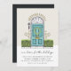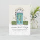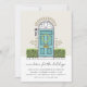 L'invitation de la fête de la maison de vacances de charme présente une illustration de porte turquoise, esquissée et turquoise, flanquée de buissons verts et d'une couronne de Noël, avec "nouvelle maison pour les vacances" en écriture manuscrite chic. Personnalisez avec vos détails de célébration sous.