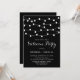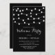 Invitation de fête de bienvenue élégante et fantaisiste avec lumières de fée pendantes blanches sur arrière - plan noir. Cette invitation est parfaite pour les événements nautiques et extérieurs.