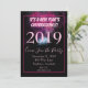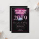 Personnalisez cette charmante invitation à la fête du Nouvel An 2019. Sur un fond noir, cet article affiche un fond de feu d'artifice rose avec tout votre texte écrit en police rose clair. Vos informations de fête. Commandez un set dès aujourd'hui !