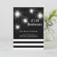 Cette Invitation d'anniversaire en noir et blanc est décorée de feux d'artifice pétillants.