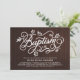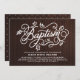 Invités Invitations au baptême de votre enfant avec cette invitation rustique du pays. Il présente des lettres blanches, des accents de feuillage et des motifs pois avec arrière - plan motif en faux bois. Cette invitation rustique est parfaite pour les baptêmes d'automne ou d'automne.