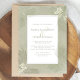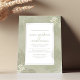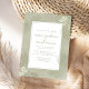 Cette conception présente une destination simple moderne boho, avec une feuille de feuilles tropicales vertes, une botanique plage océan côtière, un feuillage de verdure de sauge de lime aquarelle, un minimaliste simple élégant minimal, une police de caractères calligraphique classique rustique, un style de texte de typographie moderne, pour un mariage de resort d'île, une calligraphie chic moderne sophistiquée, une calligraphie de plage élégante avec dos monogramme couple mariée marié.