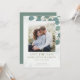 Carte d'annonce de mariage à l'aquarelle élégante avec feuillage d'eucalyptus, recto-verso. Avec des feuilles de feuillage d'eucalyptus à l'aquarelle. Ce modèle de conception présente une mise en page avec une photo.