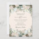 Ces invitations de mariage à fleurs d'aquarelle présentent beaucoup de feuilles verts avec des fleurs dans des tons doux de vert, crème, sauge, et marron sur un arrière - plan doux roux.