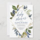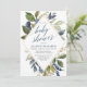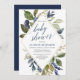 Invitation Feuillage vert bleu garçon baby shower géométrique