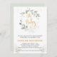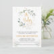 Ce dessin présente une illustration de feuillage vert et doré en aquarelle. En haut de l'invitation, confetti à effet doré
