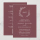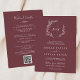 Ce faire-part de mariage minimaliste de week-end bordeaux feuille est parfait pour un mariage boho. Le design bohème présente une silhouette de verdure simple dans une couleur de vin rouge foncé avec un style boho minimaliste classique. Économisez du papier en incluant le calendrier des événements du week-end au verso du faire-part de mariage au lieu de sur une carte d'enceinte séparée. Inclure un code QR pour que vos invités puissent consulter votre site Web mariage, ou à RSVP facilement en ligne.
