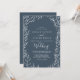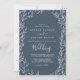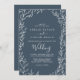 Cette carte de faire-part de mariage bleue en ardoise minimale est parfaite pour un mariage élégant. Le design se compose d'une simple silhouette verte dans un bleu gris foncé avec un style minimaliste classique.
