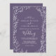 Cette carte minimale de faire-part de mariage pourpre de prune feuille est parfaite pour un mariage de saumons. Le design des tons de bijoux est composé d'une simple silhouette de feuilles verdoyantes dans un violet bleu foncé violet avec un style boho minimaliste.