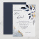 Invitation Feuilles bleues avec mariage or