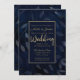 Invitation Feuilles botaniques bleu foncé mariage moderne chi
