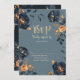 Invitation Feuilles d'or RSVP Marine Blue Flowers