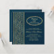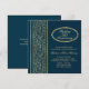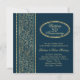 Invitation 50e anniversaire de mariage avec des feuilles dorées sur fond bleu foncé. Facile à personnaliser - changez la police, la couleur, la taille et mettez votre année de célébration.